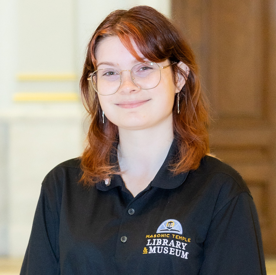 Charlotte Ingram is a museum associate at the Masonic Temple, Library and Museum. She started in 2024 as a co-op student from Drexel University and was made an official team member upon the program’s completion, balancing work with her English and history studies. Her responsibilities include fulfilling and assisting with Masonic research requests, assembling museum exhibits and maintaining the circulating library, among other tasks. Ingram enjoys playing video games, reading and fiction writing.